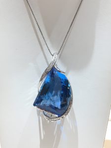 現在市場に出ているブルートパーズは 放射線を照射して着色したものがほとんどですが、昔は日本でも美しい青色のトパーズが産出された事があったそうです。